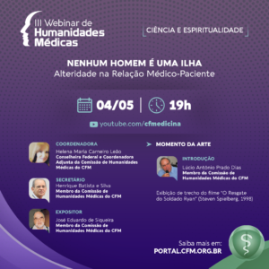 visibilidade ao seu trabalho a partir de três ações concretas bem sucedidas. A primeira atividade vitoriosa é o Congresso de Humanidades, com sete edições, interrompido na sua versão presencial desde 2020, em razão da pandemia. Para suprir a falta a comissão criou o Webinar “Ciência e Espiritualidade”, agora na sua terceira versão, com transmissão pelo Youtube. Finalmente, a terceira grande ação é o blog “Humanos”, presente na página do CFM na Internet, com temas palpitantes abordando as mais variadas questões no âmbito das humanidades.