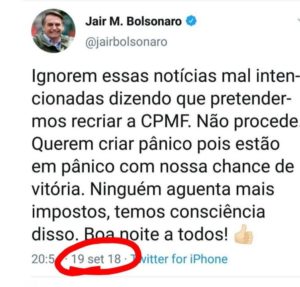 Isso em setembro 2018, pouco antes do primeiro turno das eleições presidenciais. E agora José? Isso pode ser chamado de mau-caratismo? Leia o print ao lado.