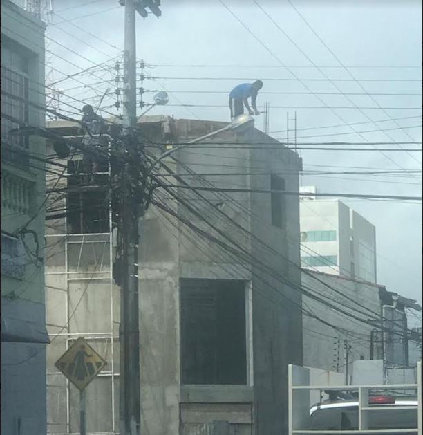 A foto acima é de ontem, 10, no início da tarde numa obra que está sendo realizada na esquina das Ruas de Maruim com Santa Luzia. São dois trabalhadores sem qualquer proteção, um deles na foto atrás dos fios dos postes e só aparece a cabeça. Está num andaime sem nenhuma proteção. São várias perguntas: cadê aa fiscalização? Vão esperar um acidente fatal? O CREA/SE e a Emurb licenciaram a obra? O blog aguardará as respostas…