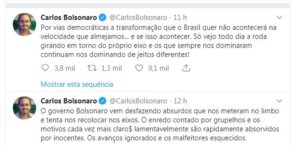 Até quando parte da população brasileira assistirá calada as manifestações antidemocráticas de Bolsonaro e seus filhos que deveriam ser os primeiros a respeitar a Constituição? Como um presidente de uma Nação aceita calado o filho, vereador pelo Rio de Janeiro escrever que “o país não poderia mudar pelas vias democráticas.”