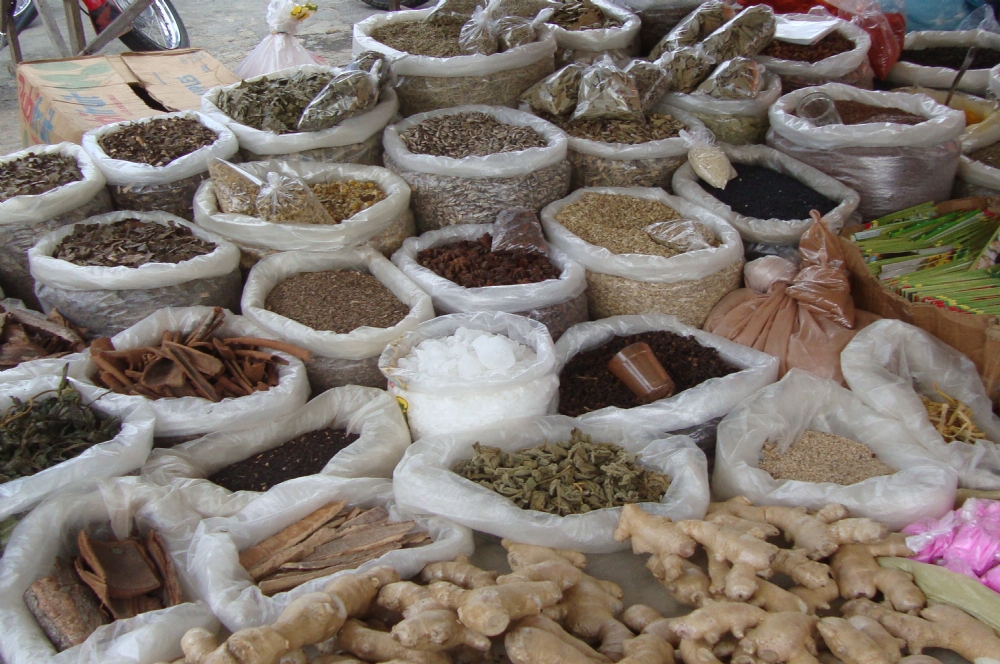 | Gengibre, cascas de pau, temperos, folhas,… |
