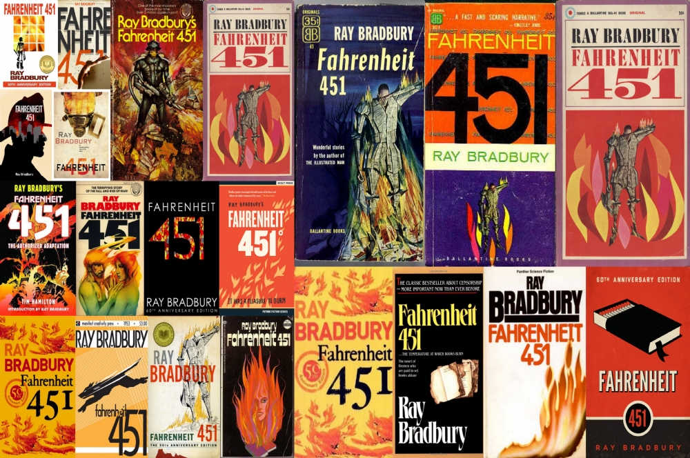 | Várias versões de Fahrenheit 451 do bestseller distópico de Ray Bradbury. |