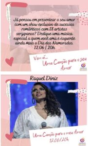 Um evento personalizado e super diferente para comemorar essa data tão esperada pelos apaixonados. Além de contribuir para que nós, artistas sergipanos, consigamos passar essa fase difícil com dignidade. “Uma Canção para o Meu Amor”” é uma forma diferente, única, inesquecível para o seu “Dia dos Namorados ou Namoradas!”