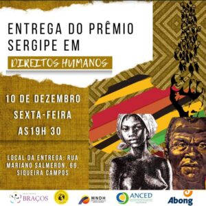 Projeto De acordo com o mestre em Educação e fundador do Instituto Braços, Robson Anselmo, “o projeto foi instituído pelo Conselho Diretor do Instituto Braços, em 2014. Nesta edição foi acrescida a premiação ‘Patronos dos Direitos Humanos em Sergipe’”. Ainda segundo o educador negro, os nomes das personalidades a serem reconhecidas com o prêmio foram debatidos e consensuados pelo Movimento Nacional de Direitos Humanos- MNDH em Sergipe. O evento – que também vai celebrar o 73º aniversário da Declaração Universal dos Direitos Humanos- encerrará a programação da Jornada Sergipana de Combate ao Racismo e Pelos Direitos Humanos, iniciada no dia 19 de novembro deste ano.