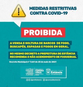 Momento complicado A decisão leva em consideração o momento complicado em decorrência da pandemia da Covid-19, que tem causado a super lotação dos leitos de UTIs nos hospitais de Estância (Jessé Fontes e Amparo de Maria) e de todo o Estado de Sergipe. O documento também recomenda que a população evite acender fogueiras no mês de Junho, para evitar o aumento de casos e decorrência de complicações respiratórias e também de queimaduras.