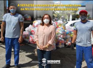 abraçou a causa solidária liderada pelo Governo do Estado e realizou na manhã da quinta, 27, a entrega de mais de 300 quilos de produtos, entre gêneros alimentícios e de higiene, doados pela empresa Niltek à Campanha Solidarize-SE, coordenada pela Secretaria de Estado da Inclusão e Assistência Social e articulada pela Vice-Governadoria. A Superintendente de Administração e Finanças da SEFAZ/SE, Denise Almeida Costa, encontrou-se a Diretora de Assistência e Desenvolvimento Social, Inácia Brito, a Secretária de Gabinete, Girleide Carvalho, o Assessor Especial, Pedro Brasil, e com o Diretor Financeiro, Marcus Teles Chou para fazer a entrega. “A Campanha é a união de forças entre o poder público, a iniciativa privada e a sociedade para levar conforto às famílias que estão em situação de vulnerabilidade alimentar nesse momento de pandemia”, declarou Denise Almeida.