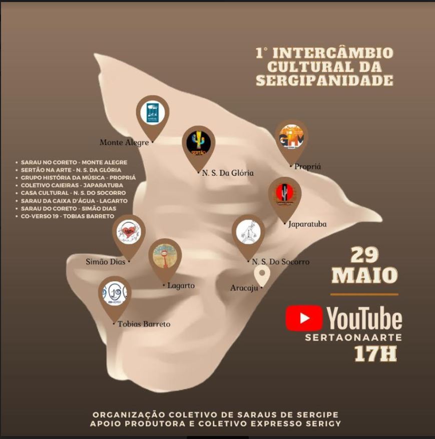 Diante da caminhada, os/as participantes do Coletivo começaram a pensar em uma ampliação da ação, buscando fazer uma maior integração dos movimentos alternativos do estado, criando o I Intercâmbio Cultural da Sergipanidade a ser realizado neste sábado, 29/05/21, com transmissão via canal do YouTube, Sertão na Arte, às 17h: https://www.youtube.com/c/Sert%C3%A3onaArte/featured