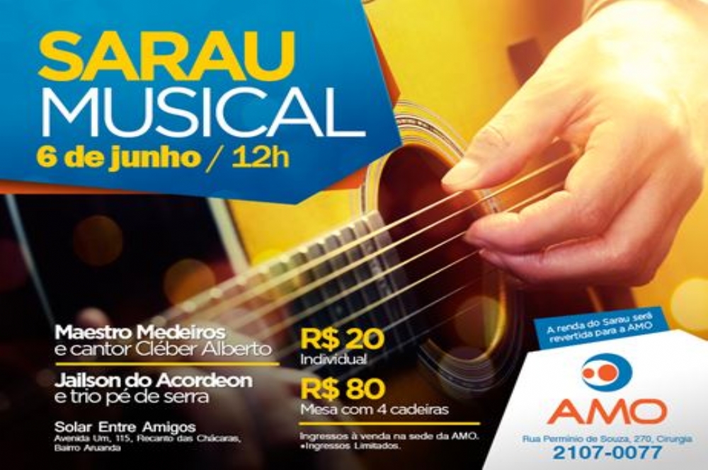 Sarau reunirá variadas atrações musicais em prol da AMO