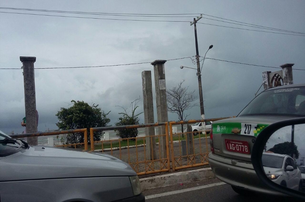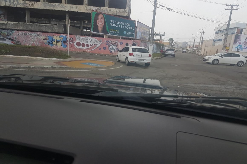 Estado da Fazenda na contramão no trecho do ponto de táxi em frente aos Arcos da Orla, na Avenida Rotary, até o posto de gasolina da esquina com a Avenida Niceu Dantas. O carro era dirigido por um jovem usando um boné e não parecia ser um motorista em serviço. Na foto ele já tinha saído da contramão e pegava o retorno sentindo Atalaia/Centro.