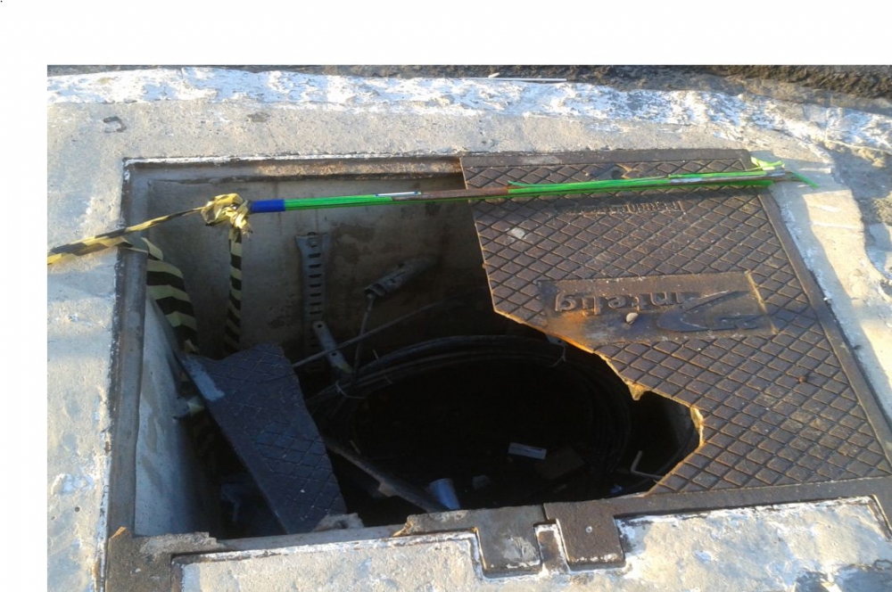 Há vários dias uma parte de uma tampa metálica que serve de proteção para a rede telefônica está quebrada na