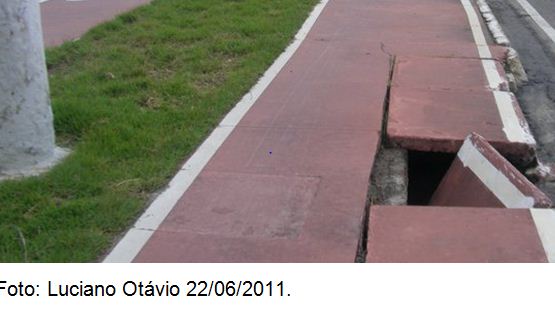 lógica do Poder Público para o Poder DO Público. O caso a ser apresentado mostra um buraco na ciclovia localizada na Avenida Tancredo Neves, próximo a Pousada Poxim. Um lugar de grande circulação de carros e também de ciclistas que todos os dias utilizam este espaço para os seus mais variados percursos e trajetos. Foto ao lado.