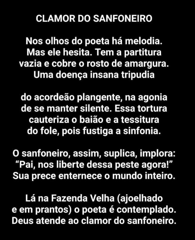 A sintonia do Soneto Traduzindo a foto do sanfoneiro Erivaldo de Carira como se estivesse em oração, pedindo a Deus o fim da pandemia, para que a música volte a vibrar em meio ao povo … (Soneto e foto Wanderson Andrade). Mais fotos do cidadão Wanderson Andrade: https://www.instagram.com/wander.bastoss/