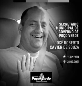 Do prefeito Iggor Oliveira: “É com o coração dilacerado que comunico o falecimento do meu querido amigo-irmão e uma das melhores pessoas que já habitaram essa terra, Roberto Xavier, nos deixou nesta tarde! Que Deus o receba com as honrarias dos homens de bem que por aqui passaram!!! Vá em paz, meu irmão!”