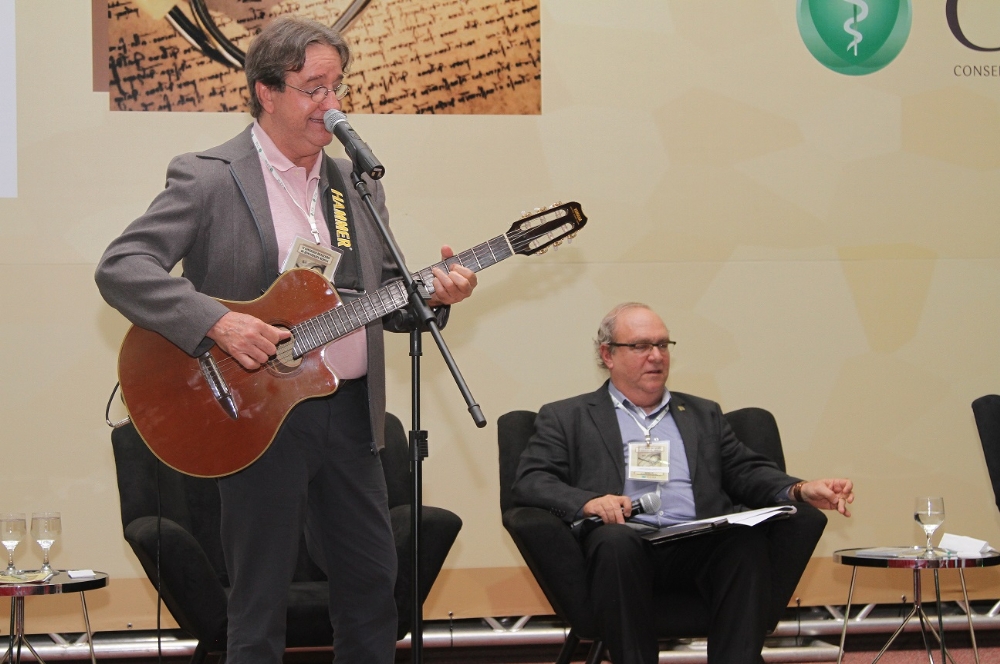 Foi nesse ambiente extremamente acolhedor que aconteceu o VI Congresso. Na oficina que apresentamos, tivemos o privilégio de contar com a presença do colega João Alberto Silveira, esse sim um músico social e humanista por excelência. Foi um momento mágico que durou quase duas horas, onde destacamos a música como agente de promoção à saúde, através de jingles da autoria dele e apresentamos um repertório de clássicos da MPB compostos por médicos, sozinhos ou em parcerias. Como diz o slogan da nossa SOBRAMES (médicos, escritores e artistas em confraria), dons que se encontram são eternos.