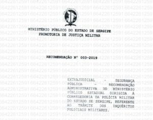 publicada no BGO No último dia 02 de agosto foi publicado no Boletim Geral Ostensivo, por determinação do Ministério Público Estadual, uma recomendação onde são expostos diversos pontos por conta dos inquéritos policiais militares malfeitos dificultando a ação do MPE. O órgão obrigou a PMSE publicar o parecer para que todos da corporação tivessem conhecimento.