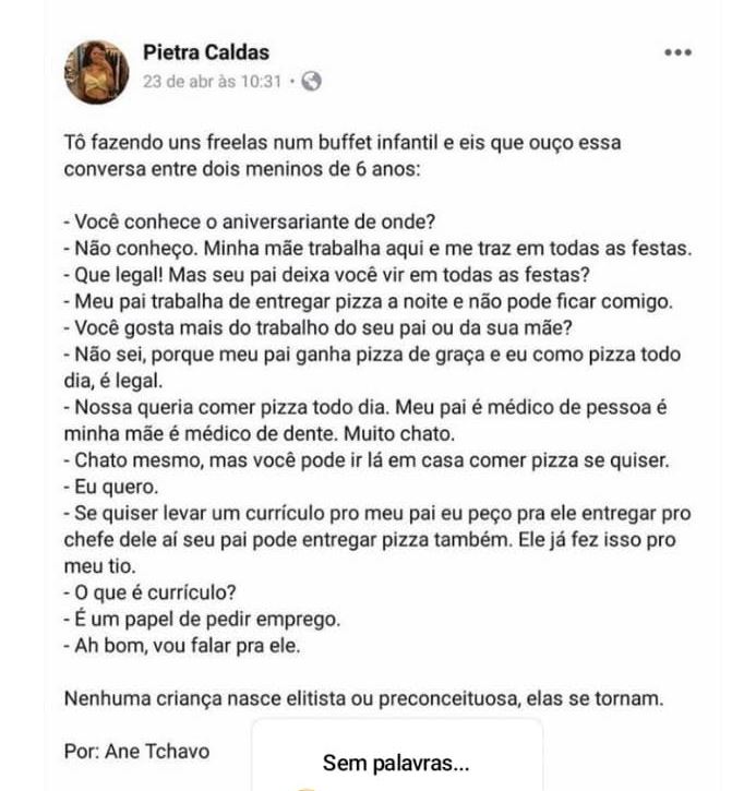 www.twitter.com/Rafael_Salomao Quanto tiver um filho, dê consciência e n liberdade. Com a liberdade ele vai crescer achando que pode tudo. Com a consciência, não!