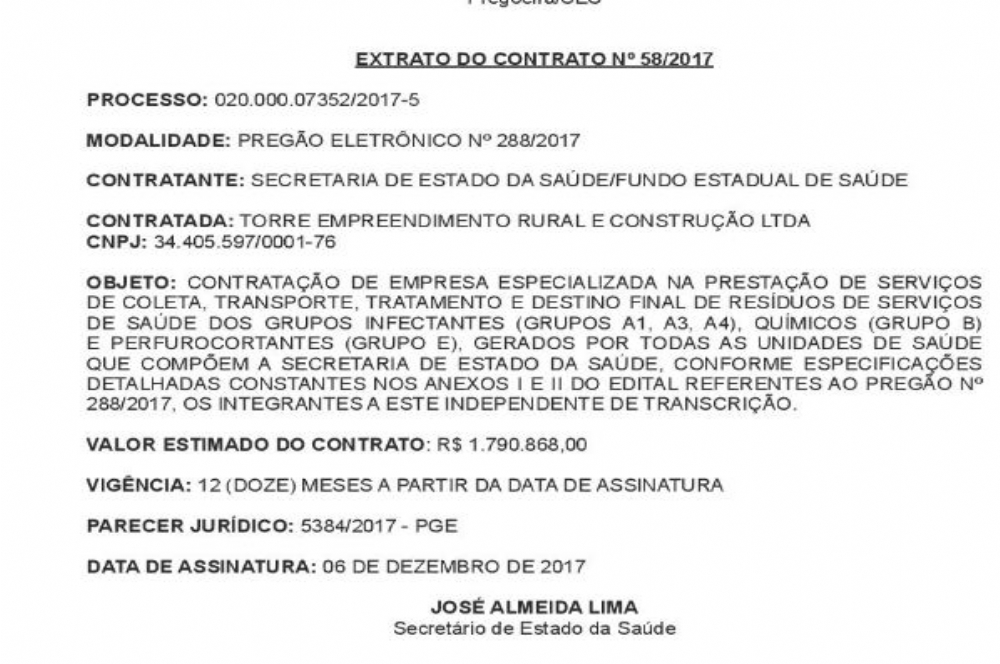 Saúde estadual: empresa Torre vence pregão de quase R$ 2 milhões Realmente a empresa Torre é de tirar o babel, ou desculpe, o chapéu. Além de fazer coleta de lixo e limpeza público, de realizar obras de terraplanagem, de construção de estradas, ela também atua no ramo de coleta, tratamento e destino final do lixo, ou melhor, dos resíduos de serviços de saúde dos grupos infectantes gerados por todas as unidades da Secretaria de Estado da Saúde. E para estes serviços venceu o pregão eletrônico para prestar os serviços por 12 meses pela bagatela de R$ 1,7 milhão.