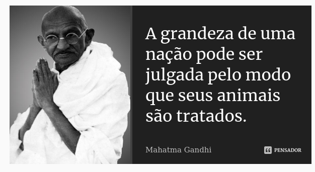 “A grandeza de uma nação pode ser julgada pelo modo que seus animais são tratados.” Mahatma Gandhi.