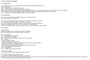 Memória e Identidade O primeiro dia de programação acontecerá no auditório do Colégio de Aplicação da Universidade Federal de Sergipe e irá abordar a Memória do Candomblé em Sergipe. A abertura do evento será feita pelo Babá Juracy Júnior e terá a participação de grandes nomes da história do universo das religiões de matriz africana em Sergipe, a exemplo de Marizete Silva Lessa, Arvanley Augusto, Reginaldo Daniel Flores, Cristiano José dos Santos, Sônia Oliveira e Jane Lúcia Ya’nganga. Toda programação no print ao lado.