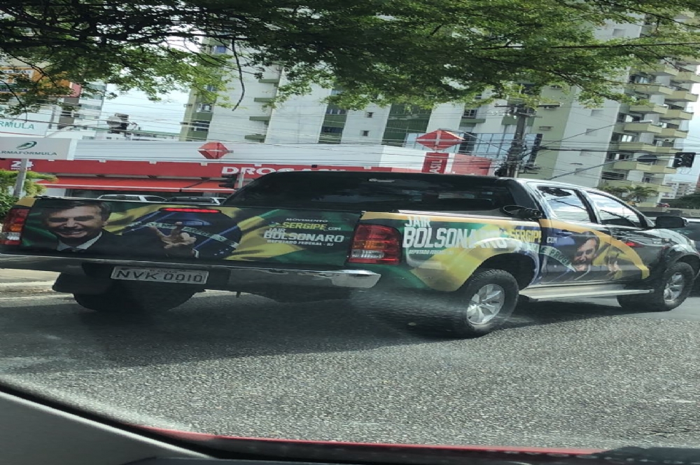 Nestas eleições pode plotagem de veículo? E antecipação mesmo sem registro de candidatura? Pelo zap: “Caro jornalista você pode responder se a plotagem de todo o veículo será liberada nesta eleição? Porque na última somente foi liberado um pequeno espaço. E mesmo assim não é crime eleitoral plotar uma caminhonete antes do registro de candidatura com todo um candidato a presidente? Incoerência, logo Bolsonaro que fala em ética e cumprimento da lei. Segue a foto.”
