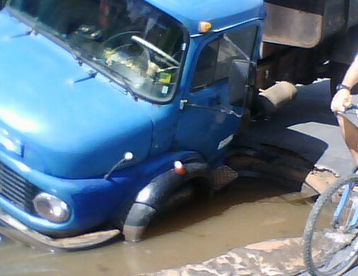Uma hora depois o motorista da caçamba não percebeu que parte do asfalto estava comprometido, pois quando ele estava atravessando a avenida a água tinha parado de jorrar.Conforme o proprietário da caçamba de nome Zuberlan, uma equipeterceirizada da DESO esteve no local para prestar as devidas providências com um caminhão muck para rebocar a caçamba até uma oficina autorizada da DESO. Convém lembrar que esta mesmo tubulação estourou há cerca de 02 meses atrás, mas não causou um estrago tão enorme quanto o atual. Ocorreu que a equipe terceirizada da DESO não realizou o serviço adequadamente pois tão logo foi recapeada a avenida, no outro dia apareceu um buraco de no minimo 40 cm de diâmetro por 01 metro de fundura, ocasionandoagora este grave acidente.OBS: O motorista conforme consta na foto graças a Deus saiu ileso”.