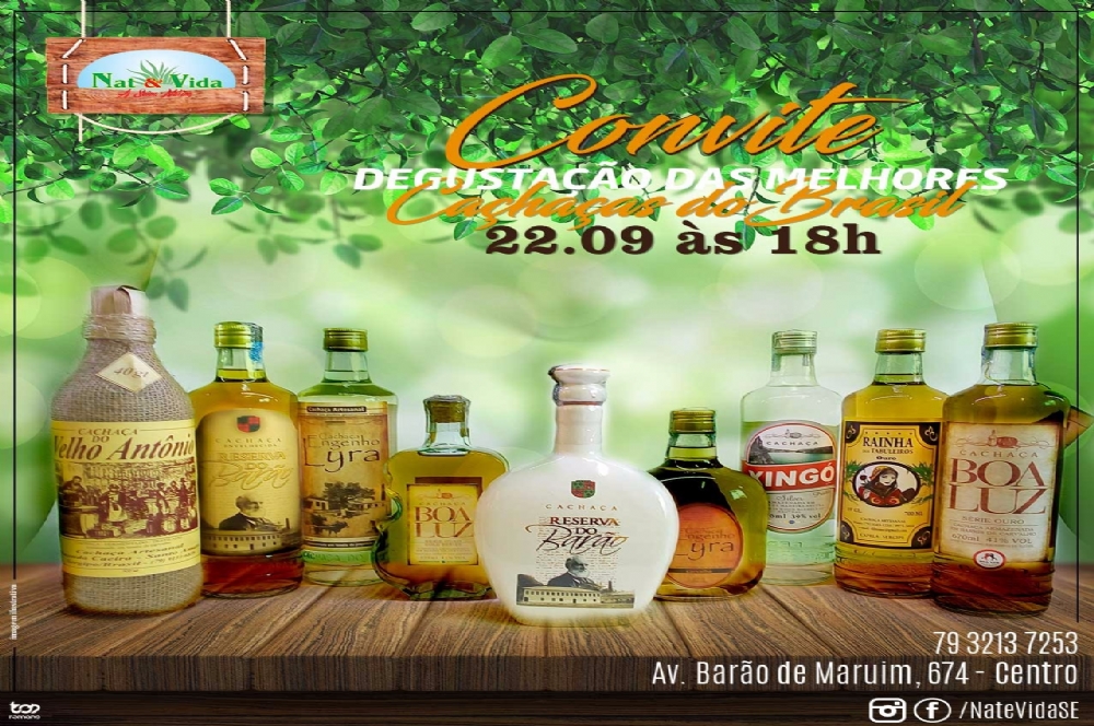 Degustação em comemoração ao Dia Nacional da Cachaça Sergipe é o país do forró. Tem milho, canjica e quentão. Quando chega o mês de junho… Eita, já chegamos em setembro, mês que comemoramos o dia nacional da cachaça! A NAT&VIDA está convidando a todos para uma grande degustação das maravilhosas Cachaças Sergipanas e de todo o Brasil. Então não esqueça dia 22/09 às 18h na Avenida Barão de Maruim, 674 – Centro, Aracaju – SE
