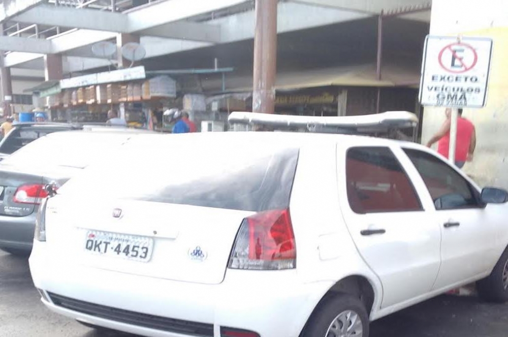 E um leitor enviou a foto tirada no último sábado no mercado central de Aracaju onde um veículo com giroflex, placa QKT 4453, da Fiat, estava estacionado no local para veículos da Guarda Municipal de Aracaju. E pode? Carro descaracterizado?