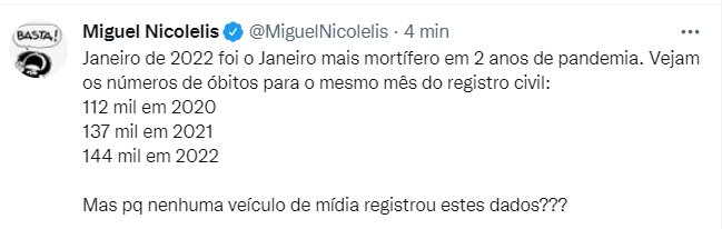 www.twitter.com/gersonsalvador Hoje (08/02) 1189 pessoas morreram de COVID-19 no Brasil. Quase a totalidade pela variante Ômicron. Não é leve, não está acabando, cuidemo-nos. 1189 amores de alguém.