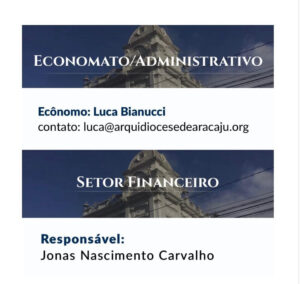 Insistência O blog continua sem entender o porquê do site da arquidiocese de Aracaju continuar informando que o ex-ecônomo Luca, demitido aos gritos pelo arcebispo d. João Costa, ainda constar o seu nome como o ecônomo e que Jonas, que decidiu ir embora e abandonar o barco furado do arcebispo, ainda é o responsável do setor financeiro. Já que o arcebispo e o seu vigário-geral têm o costume de se levantar logo cedo apenas para ler o blog de Cláudio Nunes, aproveitem e determinem a correção dos nomes na página da arquidiocese, por favor. Ou o jeito é apelar ao ministro da propaganda?