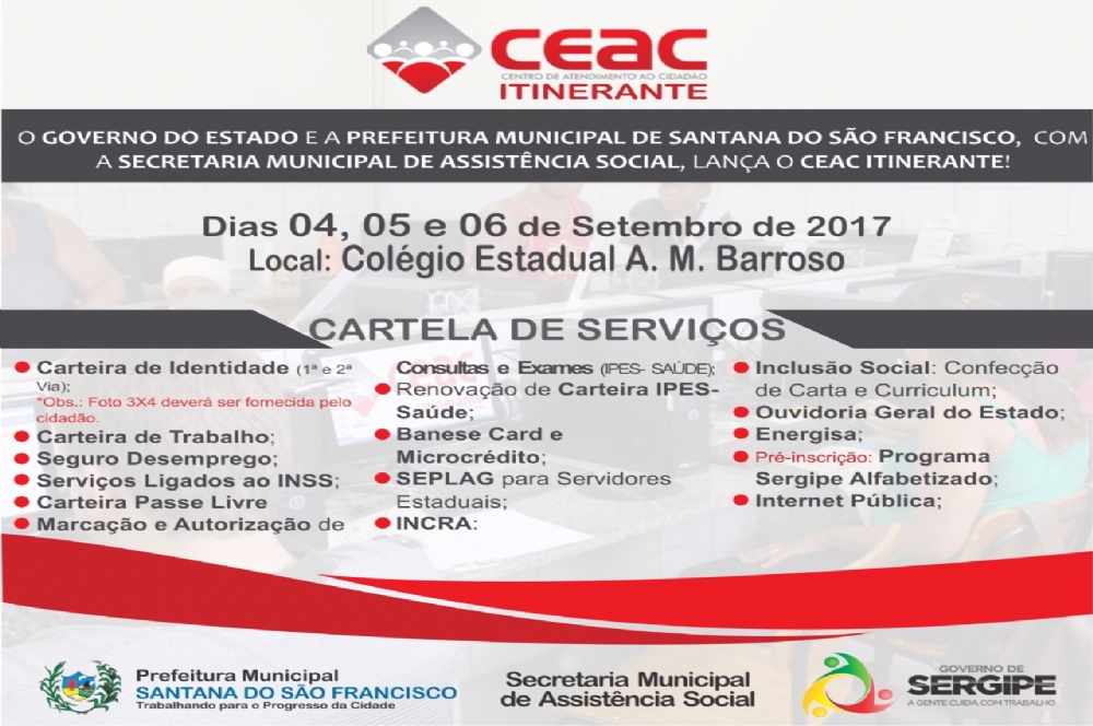 | CEAC itinerante em Santana do São Francisco, de hoje, 04, até quarta-feira, 06. |