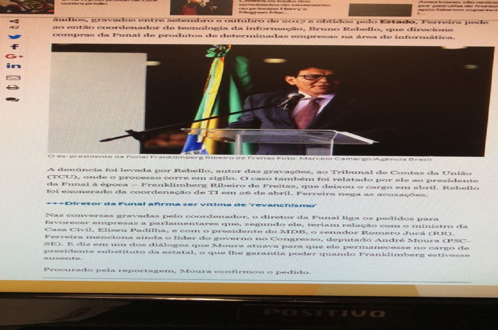 Fundação Nacional do Índio (FUNAI), Francisco José Nunes Ferreira, e um funcionário da área de tecnologia tiveram conversas gravadas, as quais indicam a tentativa de favorecer empresas em contratos com o órgão. As informações são do jornal O Estado de SP.
