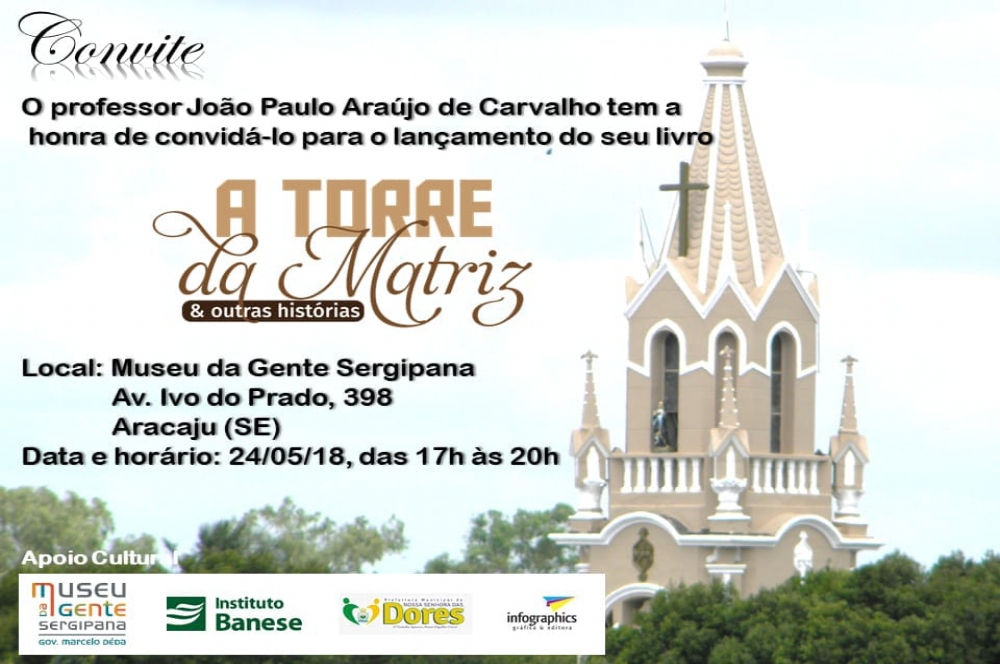 A Torre da Matriz e outras histórias O historiador e escritor João Paulo Araújo de Carvalho lancará hoje, 24, a partir das 17h, no Museu da Gente Sergipana o livro "A torre da matriz e outras historias.” O livro aborda principalmente a Igreja matriz de Nossa Senhora das Dores, único patrimônio edificado do município.