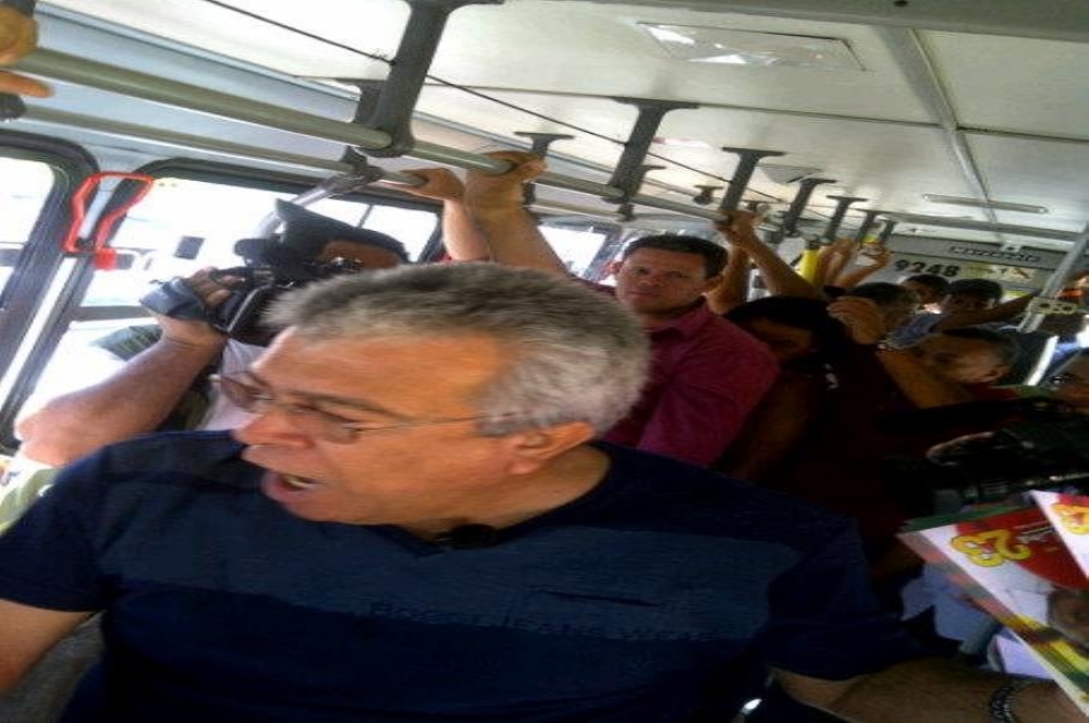 acordou cedo, desceu do elevador de sua mansão para chegar a um ponto de ônibus (de carro é lógico) para tentar mudar sua imagem perante o eleitorado. Note, caro leitor, que na foto, ele demonstra a dificuldade de acordar cedo (como qualquer trabalhador normal) e está de boca aberta bocejando. No mínimo deve pensar: o que não faço para conseguir uns votinhos…