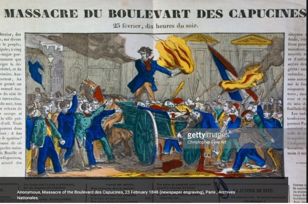 | Massacre do Boulevar dos Capoucines em 23 de fevereiro de 1848 – Gravura dda Internet |