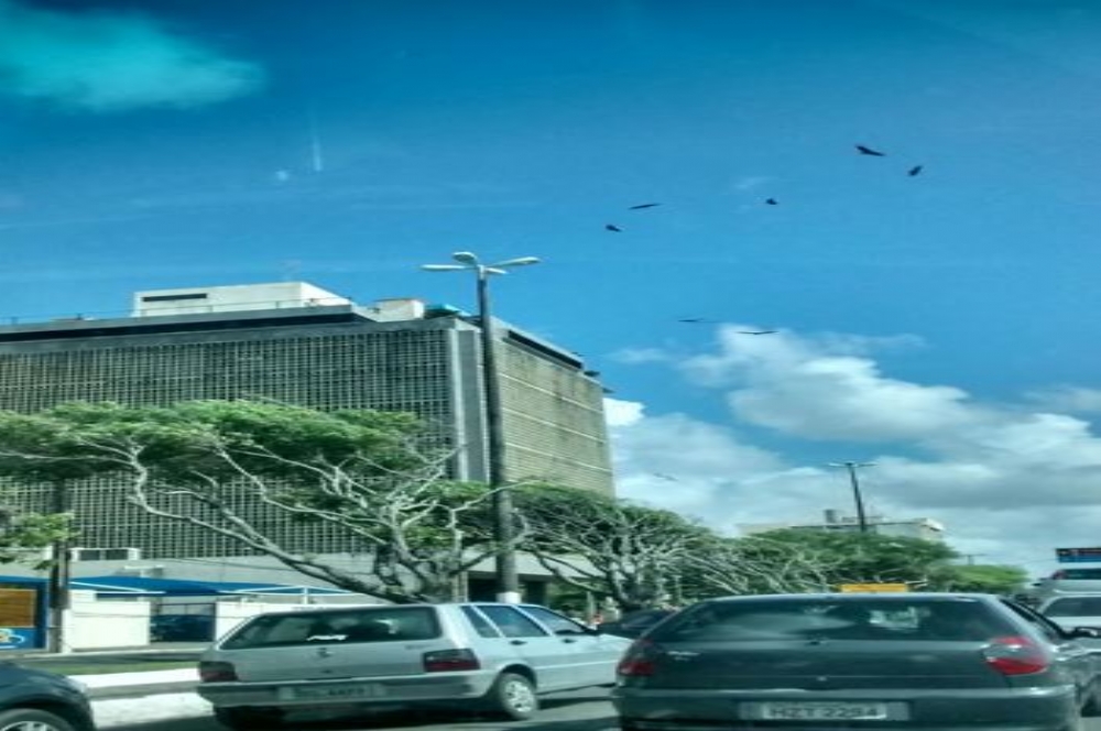 E o leitor enviou a foto tirada ontem, 23, de dentro do carro na rua da Frente, próximo a ALESE. Nota-se urubus sobrevoando a