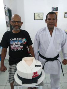 Festa e confraternização nos 30 anos do Clube de Karatê União E foi uma grande confraternização a festa dos 30 anos do Clube de Karatê União, realizada no último domingo 09, na Praça do Bairro 18 do Forte, com a Copa União de karatê. Na foto o fundador do clube, o mestre Edson de Souza, ao lado do karatê hoje coordenador do clube, Yoacan Jócelis.