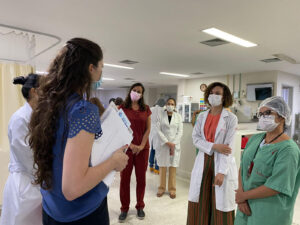 Escala no Brasil, que busca a redução de Infecções Relacionadas à Assistência à Saúde (IRAS) em Unidades de Terapia Intensiva (UTI) do SUS. Os representantes fizeram uma breve apresentação do projeto e aproveitaram para avaliar o trabalho que o hospital desenvolve em suas UTIs.