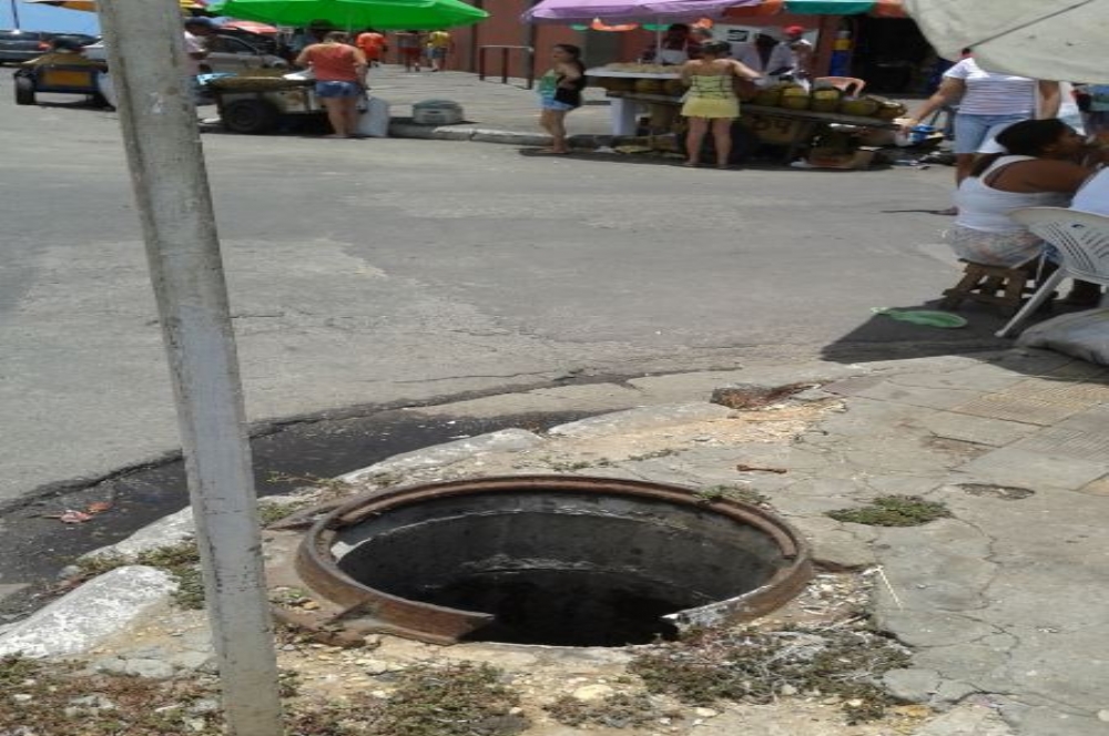 Aracaju, próximo ao estacionamento e a rampa de acesso ao setor de venda de confecções. “Esse buraco existe, em plena calçada, há meses, colocando em risco de morte os pedestres e dificultando a acessibilidade dos portadores de necessidades especiais. Um absurdo refletido diretamente aos olhos de qualquer órgão de fiscalização.Será que ainda exista algum órgão público responsável para resolver esse problema?”, escreveu o leitor.