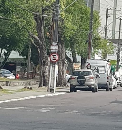 Placa da vergonha na Praça Tobias Barreto: prefeito Edvaldo peça para a SMTT arrancar a placa de proibido estacionar que não é respeitada. Os agentes só multam os pobres mortais motoristas. No local, que fica em frente a SSP, os agentes fecham os olhos, se borram de medo.