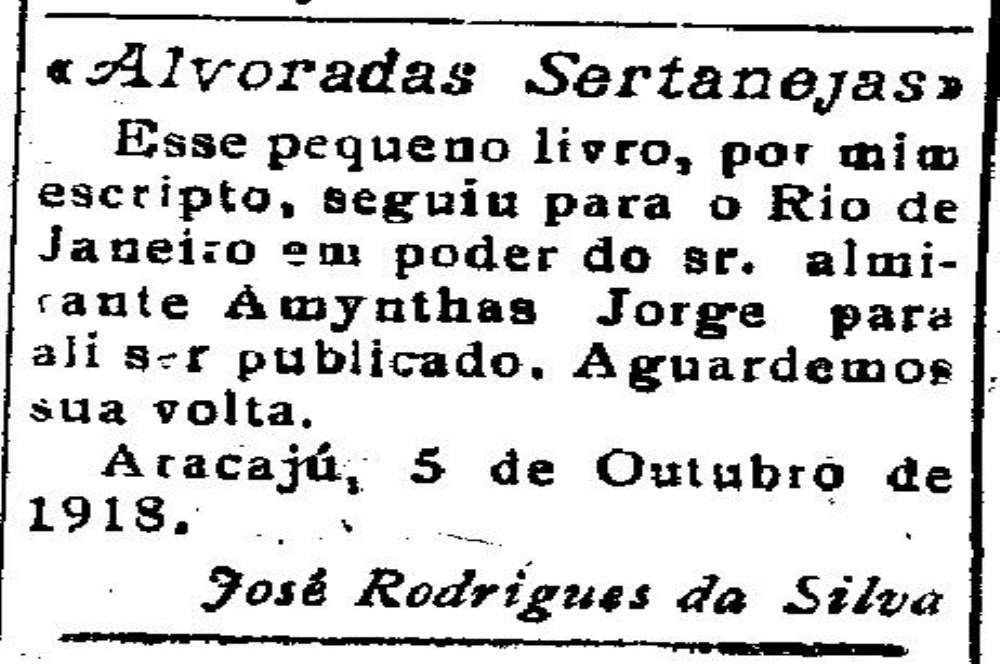 Publicado no jornal Correio de Aracaju em 26 de outubro de 1918 Resumo dos Jornais |