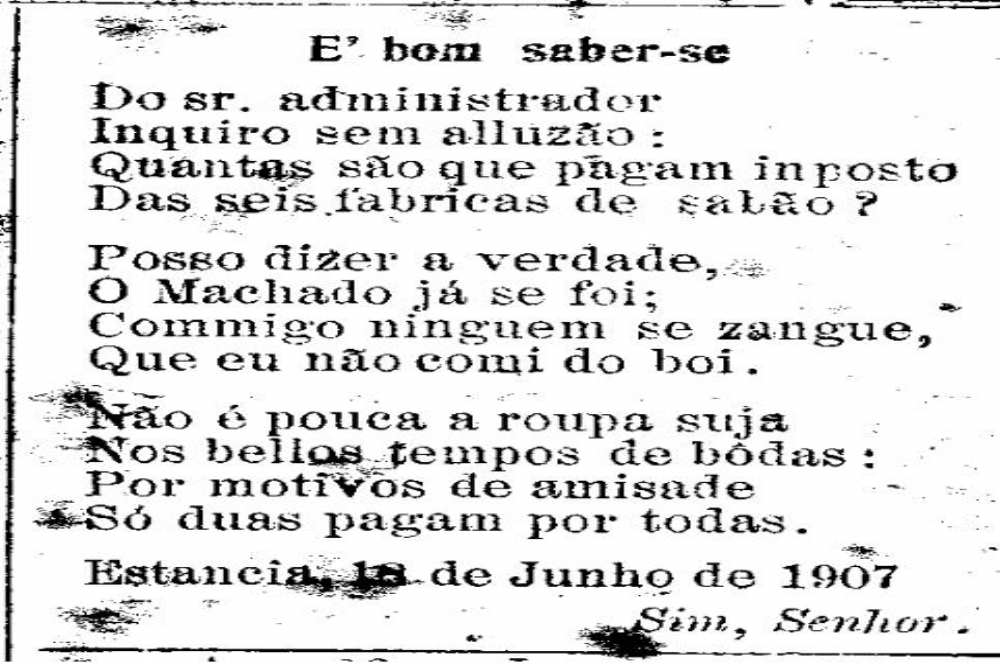 | Publicado no jornal aracajuano Folha de Sergipe, em 23 de junho de 1907 |