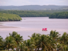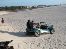 Bom mesmo é embarcar nesta aventura, ou melhor, embarcar neste cenário de novela, pois tudo A dica é partir de onde está hospedado no vilarejo. Aprecie à beira-rio e visite a igrejinha ao centro do povoado. Também conheça as casas consideradas dos personagens Bafo de Bode e de Tieta, dentre outras que serviram de cenário para a filmagem da novela da Rede Globo. Depois de conhecer a Vila de Mangue Seco, o bugreiro (motorista do bugre) irá perguntar se o passeio e com emoção ou sem emoção. O embarque para a aventura nas dunas está garantido. São dunas que mudam de local e tamanho, muitas delas soterrando casas e o cemitério da localidade. O motorista pára em pontos pitorescos e há 1,5km chega à praia de Mangue Seco. Ponto de encontro de turistas, a praia é onde convergem os diversos sotaques durante o dia, após terminar a aventura nas dunas. Cerveja gelada, água de côco e rede de dormir, isso mesmo…! Rede para o conforto do visitante estão disponíveis em rústicas barraquinhas. O atrativo a mais é encontrar os vendedores das “muquequinhas”, ou melhor, um catado de aratu enrolado em palha de coqueiro ou palmeira, bem temperado com tomate, cebola, pimentão, azeite-de-dendê e urucum. Há sempre uma história para contar ou até mesmo a história de vida de cada um. Reserve um tempo para passar uma tarde de lazer na praia. Se preferir pode até chegar à praia da Costa Azul, mas não mudará muito a paisagem. Na volta ao vilarejo, contemple o pôr-do-sol com vista para as terras sergipanas. O espetáculo da natureza revela uma praia bucólica e romântica. À noite, esqueça do burburinho e da badalação das cidades grandes. Não há muita diversão noturna e alguns restaurantes ficam Pouco iluminada, a vila oferece uma noite estrelada. Se a lua é cheia, o rio reflete sua luz e a paisagem é deslumbrante. Se preferir, pode-se caminhar pelas dunas, porém, sempre requer um cuidado a mais. Uma outra opção é caminhar pela margem do rio Real. Os coqueiros se debruçam, curvando seu tronco sobre as águas e lembram as paisagens jorgeamadianas. O cenário continua sendo de tranqüilidade e contato com lendas, personagens e natureza ainda preservada. O vilarejo parou no tempo, porém, diz os nativos que foi propositadamente para contemplar a bela paisagem. O turista agradece pela tranqüilidade, poesia, praias e rios limpos. A melhor dica é fazer parte deste cenário. Dicas de viagem Dois dias é o suficiente. Vale à pena passar uma noite no local para contemplar o pôr do sol e o amanhecer; Há agências de viagem em Aracaju que fazem passeios de um dia para Mangue Seco, o tradicional bate e volta, ao preço a partir de R$ 70; O povoado já apresenta estrutura para receber bem os visitantes. São inúmeras pousadas a grande maioria rústica e sem muito conforto. Possui ainda inúmeros restaurantes quase todos bem simples; O preço do passeio de bugre pode ser ajustado. Deve-se negociar com o bugreiro; Pousada Surubim é a única que fica bem na encosta de uma duna, no lado esquerdo do vilarejo, à beira-rio com o encontro do mar. A pousada é bem simples, mas os proprietários são generosos e se pode pedir refeições que não tem no cardápio. Há também um armazém dentro da pousada e um bom de café da manhã; Os hotéis e pousadas variam de R$ 40 até R$ 200, por duas pessoas, a depender da instalação e da temporada do ano; Registro