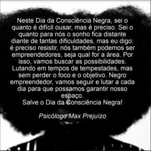 “Vidas Negras Importam”, hoje 20, às 19h Vamos lá? Vamos bater um papo sobre Dia da Consciência Negra e tantos temas que nos cercam.Com o mote internacional “VIDAS NEGRAS IMPORTAM” vamos despertar, respeitar, trocar, pois sem essas preceitos o diálogo é sempre mais difícil. Então, aguardamos você. Transmissão via meet.google.com. Certificado gerado para os participantes.