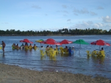 Novamente a mordomia lhe aguarda, pois há colchões flutuantes, cadeiras dentro da água a espera de quem deseje sombra e água fresca para toda a família.