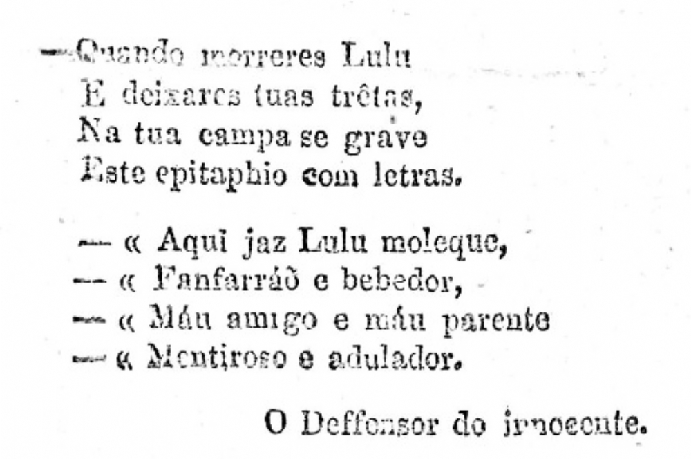| Publicado no jornal estanciano O Rabudo, em 23 de maio de 1875 |