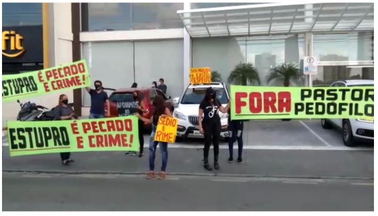 Protesto no último domingo E diversos fiéis, ex-fiéis e parentes das vítimas que denunciaram assédio sexual contra dois pastores fizeram um protesto no último domingo, à tarde, em frente à Igreja Quadrangular do Bairro Jardins. O blog lembra: a luta deles não é contra a Igreja, mas contra os dois pastores e os boatos que correm nos bastidores que dizem que eles ficarão impunes. Conversa para boi dormir de quem não conhece a seriedade das autoridades sergipanas. Aliás, tem gente com tanto medo que está estudando de ingressar com tutela antecipada com pedido de habeas corpus. Oxente! Quem não deve, não teme! Obs: a PM esteve presente e garantiu o direito de manifestação. Todos estavam de máscaras e seguindo os protocolos.