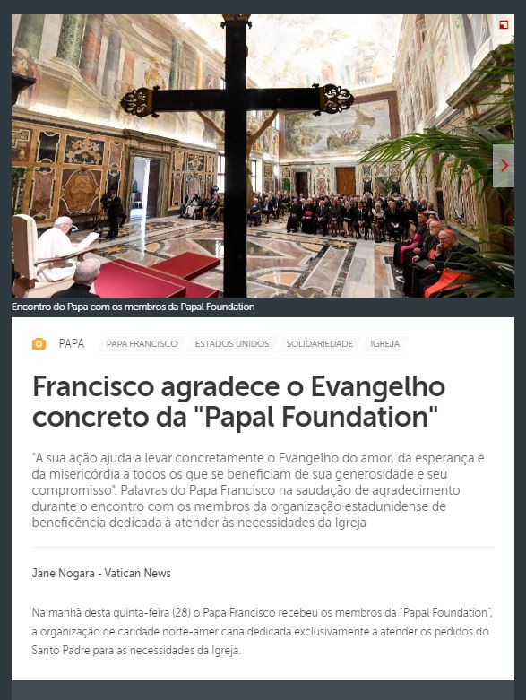Ouça e compartilhe: https://www.vaticannews.va/pt/papa/news/2022-04/papa-francisco-membros-papal-foundation-saudacao.html