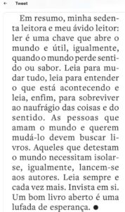 www.twitter.com/JoseRollemberg Fragmento do artigo de Leandro Karnal no Estadão de hoje, sobre o poder da leitura. #pazebem