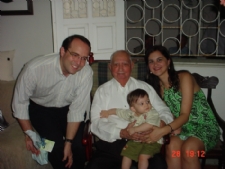 Imagem risonha de uma arritimia cardíaca bem diagnosticada e solucionada: Cabral Machado no dia de seus 92 anos de vida. Na foto estão a minha filha e sua neta, a Cardiologista Dra. Daniela Cabral, o esposo dela, o Urologista Dr. Mário Henrique Martins, pais de meu neto Pedro Henrique, que está no colo do bisavô, alegrando-lhe o coração, agora batendo em rítimo certo em 30/11/2008.