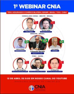 13, às 9h, do 1° Webinar  da Câmara de Negócios Internacionais de Alagoas CNIA (no canal do youtube da entidade: https://www.youtube.com/channel/UCNae7wrt0PlzPfAzjY9DWwQ) com a participação do consulado  da China em Recife, do Governo da cidade IYWU e representantes da política econômica do Brasil. O objetivo desse encontro é consolidar a remessa de mercadorias de origem alimentar para o grande mercado de IYWU. A CNIA acredita nas empresas produtoras de alimentos do estado de Sergipe e com o apoio do membro oficial da CNIA o deputado federal @laerciosergipe a pauta ficará mais em evidências! O secretário José Augusto também irá participar desse encontro! Inscrições aqui.